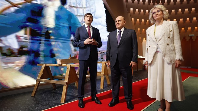 сила в мастерстве!». С заместителем Председателя Государственной Думы Федерального Собрания Викторией Абрамченко, Министром просвещения Сергеем КравцовымМихаил Мишустин осмотрел выставку «85 лет системе СПО: